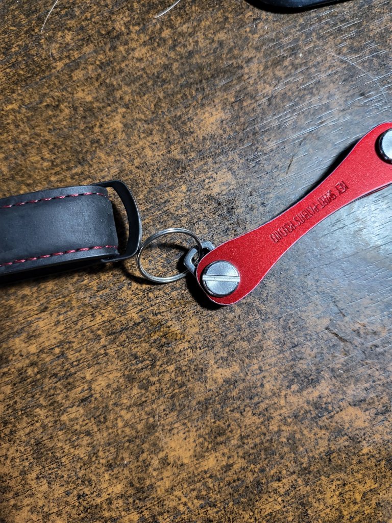 The Orbitkey will end up slightly thicker than the KeySmart, as the KeySmart uses 2 pivot points, like a Swiss army knife, whereas the Orbitkey uses only one. The crazy horse leather feels a bit more rugged and aged in a nice way, and feels good in the hand. The genuine leather also carries a pleasant smell. The other upside the Orbitkey has is the included D-ring, which is bigger than the one from the KeySmart.