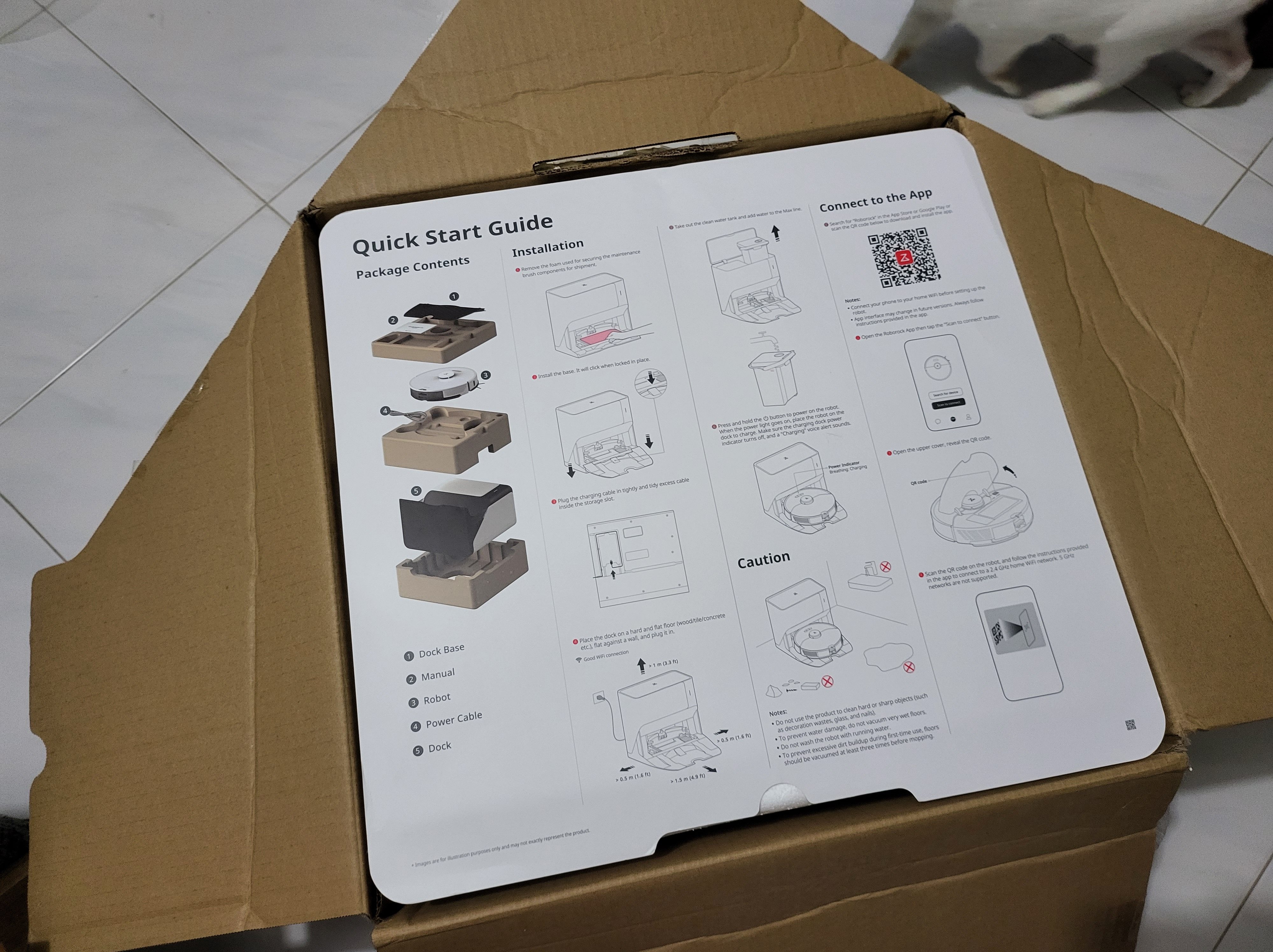 At this point, it feels like Roborock has anticipated this behaviour, because apart from the bible-thick owner’s manual, they printed and stuck in an extremely-large user set up guide. Packed on the top of the G10 shipping box, unmissable by design, in simple words, complete with pictures. Kudos. I know that setting up usually takes maybe 10 minutes max, this really seals the Roborock in its foolproof-ness.