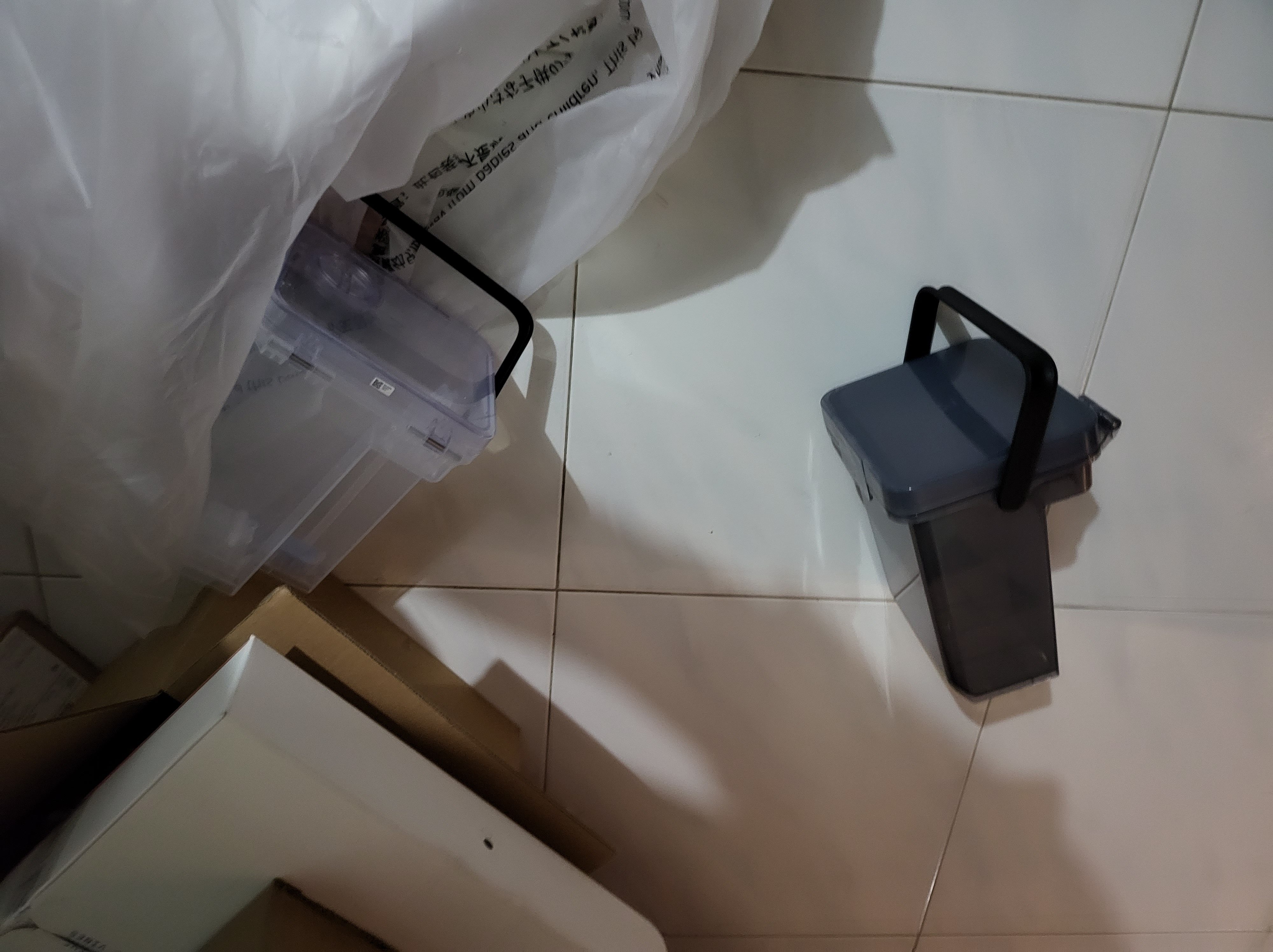 That being said, the next thing I did was try to pull the unit out of its styrofoam packing sideways, which, once free, immediately spilled its 2 containers for the washing of the mop. Thankfully these plastic tubs aren’t the fragile bits.