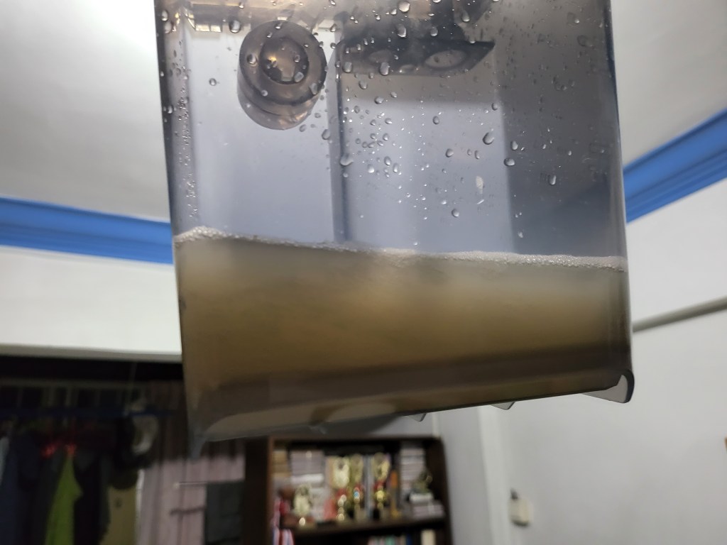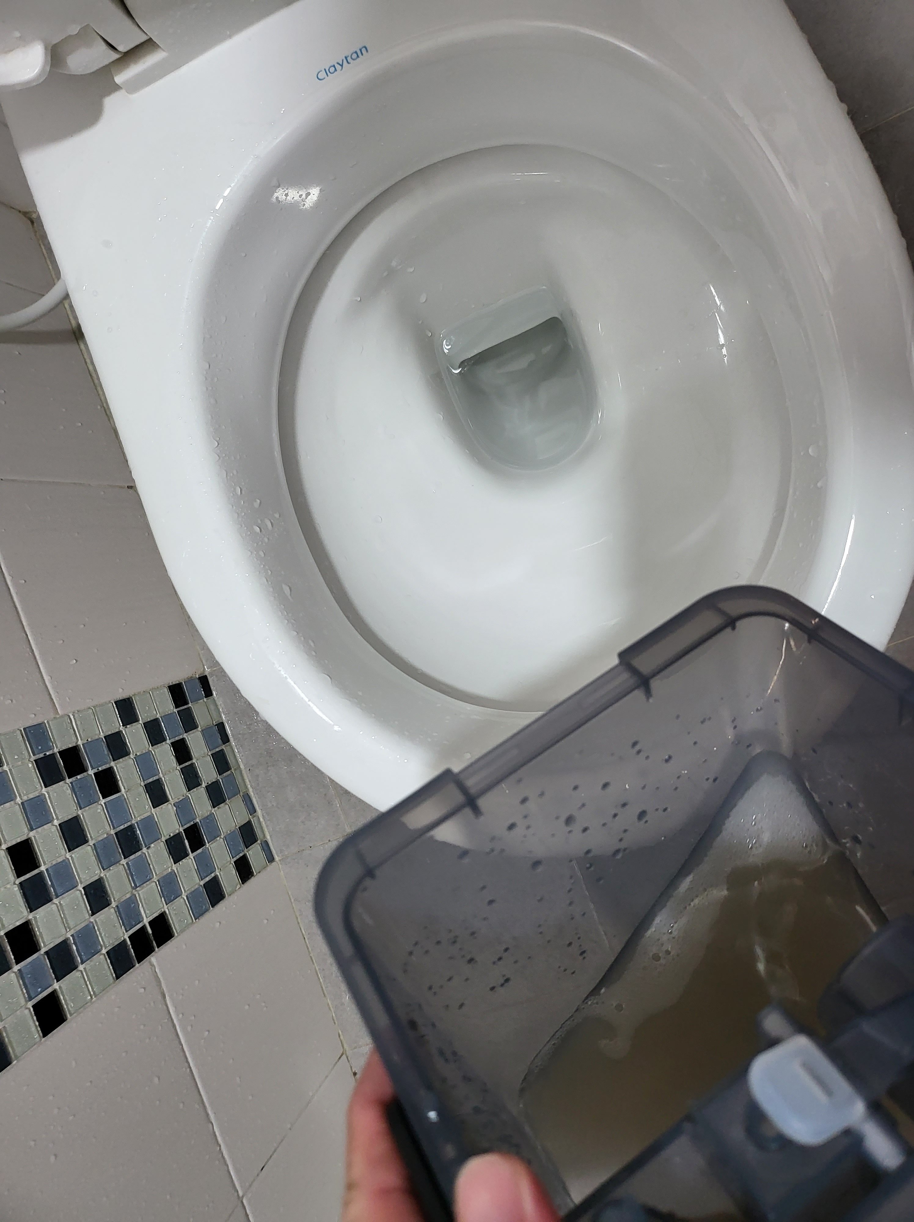 After the first round of cleaning, the G10 returns to the dock, and washes the mop before going to sleep mode. With only 1 round of cleaning done, the dirt can be seen in the used-water tank, giving it a murky grey shade, with sediment sinking to the bottom. The translucent tub helps to reinforce the utility of the G10, seeing the dirt before your eyes being dumped down the drain.