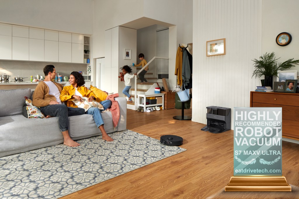The S7 MaxV Ultra lets you view your robot’s progress remotely, and goes one step further by letting you listen and speak through the vacuum remotely, thanks to its onboard mic.
