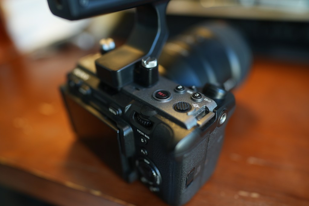 Using the FX3 feels solid and well-balanced, especially with the XLR handle attached. This setup provides a steady hold and the weight is easy to pivot. The FE 135mm F1.8 GM I borrowed from Sony was a little overkill, but having my 24mm GM on, it was a great weight distribution to control with just one hand on the top handle. The large record button is a practical addition for quick-start recording, and the dedicated controls streamline adjustments on the fly. However, having to press a button instead of using a mode dial is a minor downside, which can interrupt the flow when switching modes.
